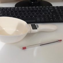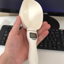 I think a wonderful idea, but sticks. I cannot use the scoop to scoop and weigh, I havs to use another scoop to gently put the dog bisciut in and it seems to get to around 65g and stops, to by pass this I have to press scoop it goes up and then comes back to a weight…but this is mainly for our holidays so that I do not have to take scales with me to weigh my dogs meals!..Love the idea just needs tweaking!..I have lived with a set of digital scales without 75g on for an eternity..I am sure I can givean extra press to vet rhe right weight! As accurate as my salter kitchen scales..once pressed and added or taken food out to get 76g..